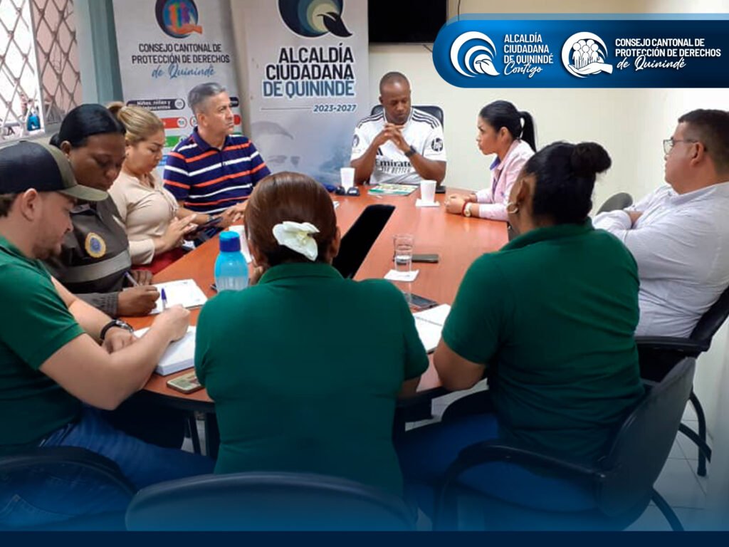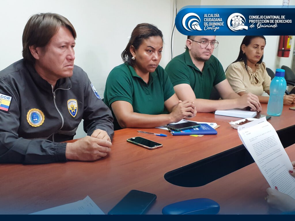 Desde la Alcaldía Ciudadana de Quinindé, liderada por el Ing. Ronal Moreno, y el Consejo Cantonal de Protección de Derechos, bajo la dirección del Abg. Ney Agustín Vilela Reina, secretario ejecutivo, y el acompañamiento por parte del presidente encargado el Abg. Leonel Quiñónez; reafirmamos nuestro compromiso de fortalecer el trabajo interinstitucional, garantizar la activación de las rutas de atención y velar por la restitución efectiva de derechos, promoviendo entornos seguros y libres de violencia.
