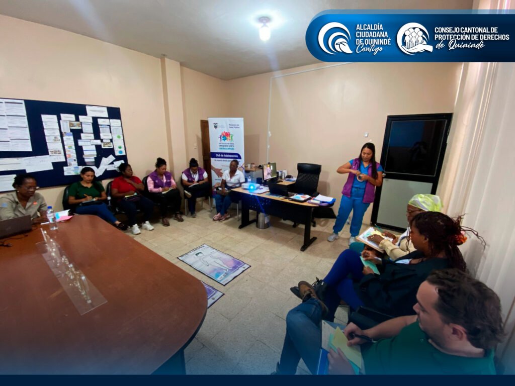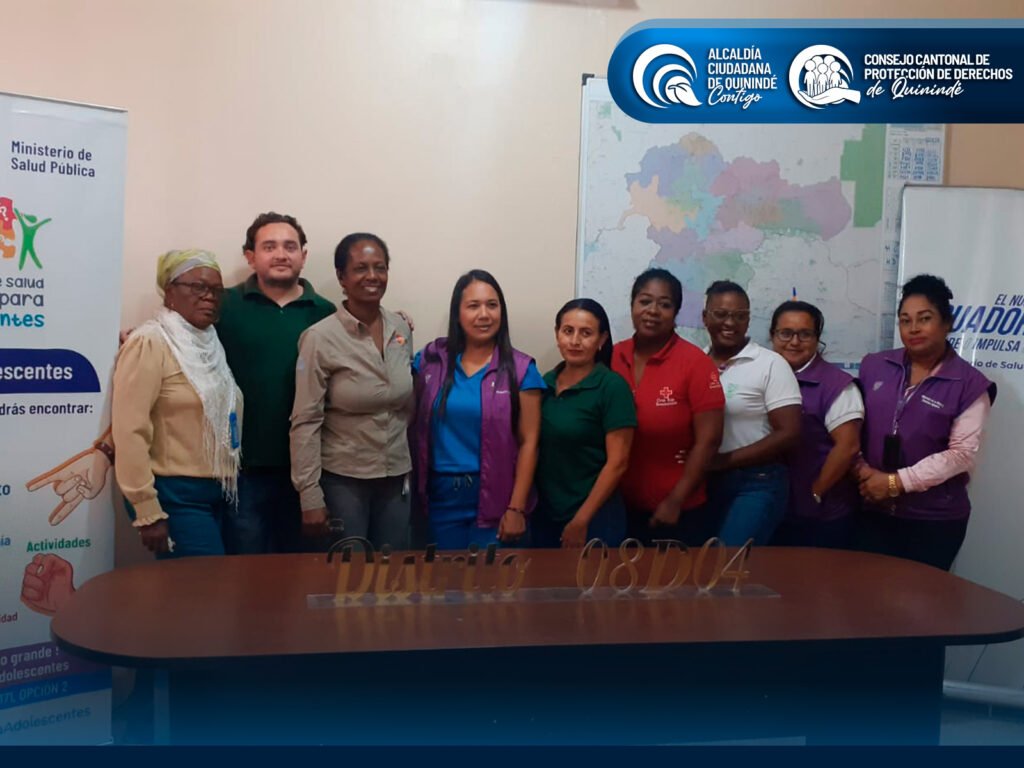 El Consejo Cantonal de Protección de Derechos de Quinindé, junto a su equipo técnico y administrativo, participó en la convocatoria realizada por el Ministerio de Salud Pública para la transferencia metodológica de la Escuela de Liderazgo Comunitario para Adolescentes, en el marco del proyecto PAISSRR (Proyecto de Abordaje Integral en Salud Sexual y Salud Reproductiva en Adolescentes).