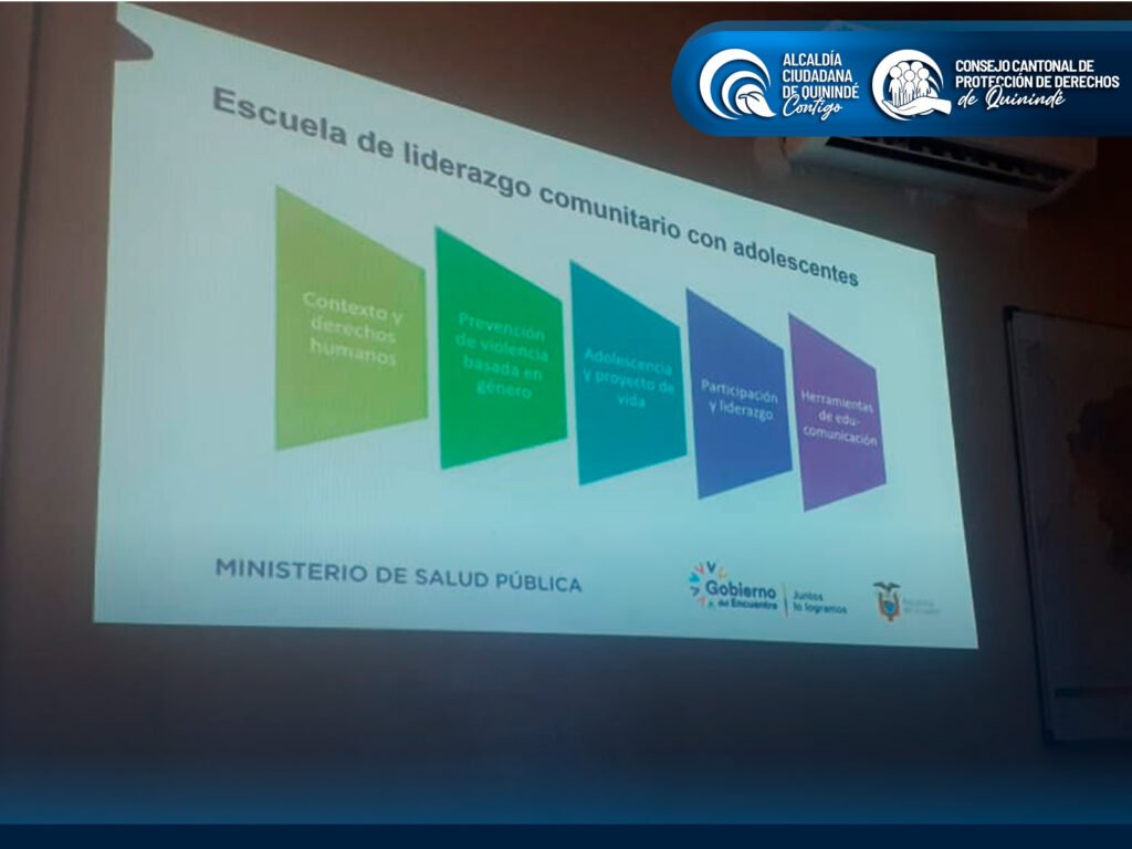 Desde la Alcaldía Ciudadana de Quinindé, liderada por el Ing. Ronal Moreno, junto al Consejo Cantonal de Protección de Derechos, bajo la gestión del Abg. Ney Agustín Vilela Reina, secretario ejecutivo, reafirmamos nuestro compromiso de fortalecer acciones interinstitucionales que promuevan el liderazgo, la participación y la protección integral de los derechos de adolescentes del cantón.