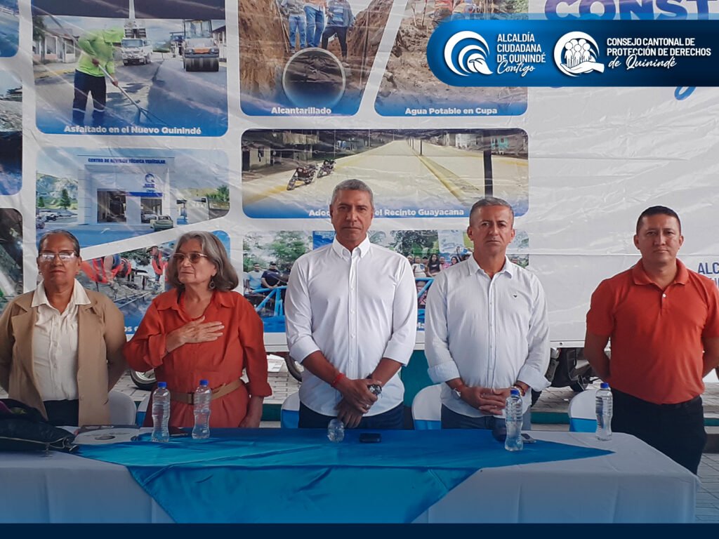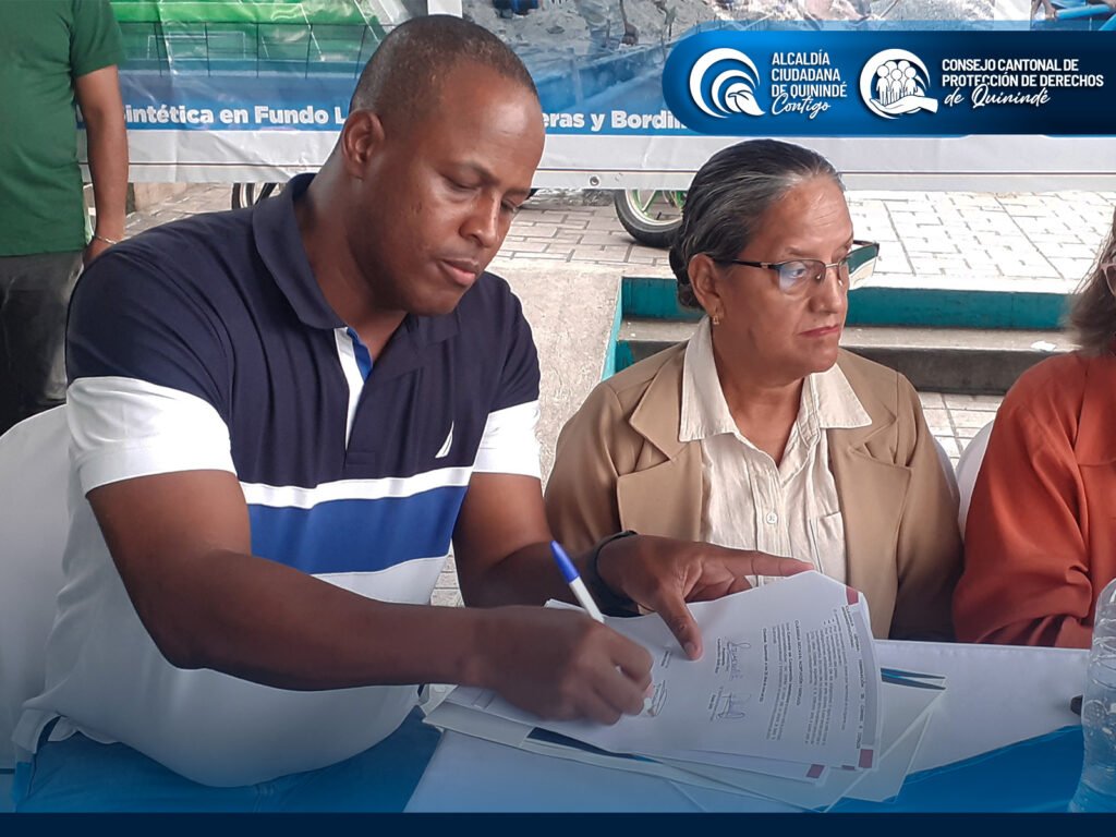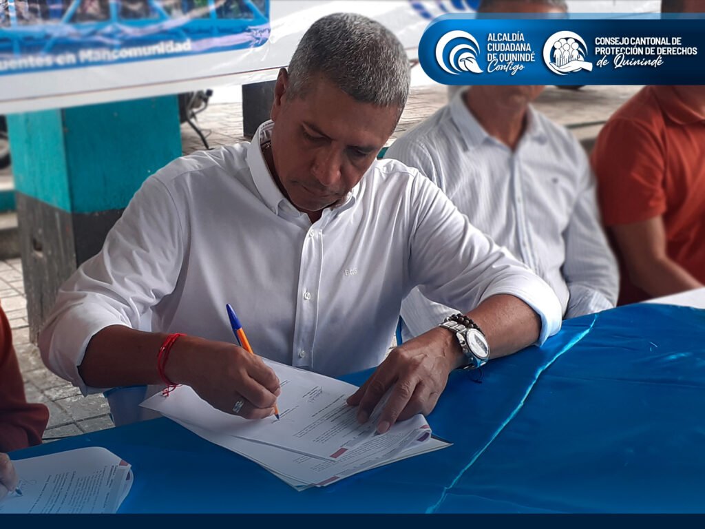 La Alcaldía Ciudadana de Quinindé, liderada por el Ing. Ronal Moreno, en articulación con la Sra. Sara Oviedo, Presidenta de la Fundación Quitu Raymi, RODDNA y el Consejo Cantonal de Protección de Derechos,bajo la dirección del Ab. Ney Agustin Vilela Reina, secretario ejecutivo y del ab. Leonel Quiñonez en calidad de presidente encargado, desarrollaron el acto de la firma del Convenio de Cooperación Interinstitucional para la ejecución del Distrito RODDNA: “Tejiendo Metodologías: Rumbo a la Sostenibilidad”.