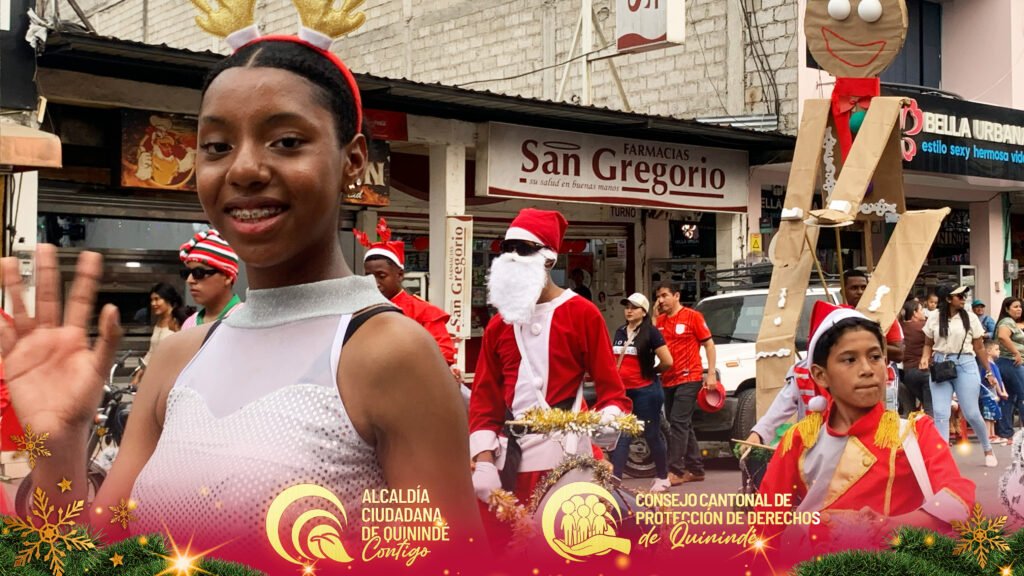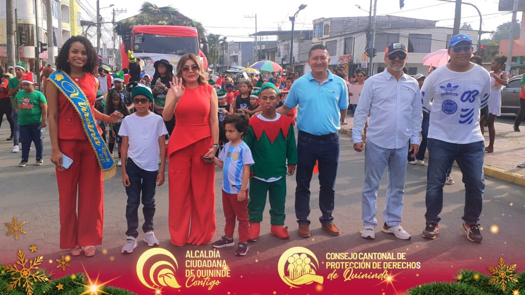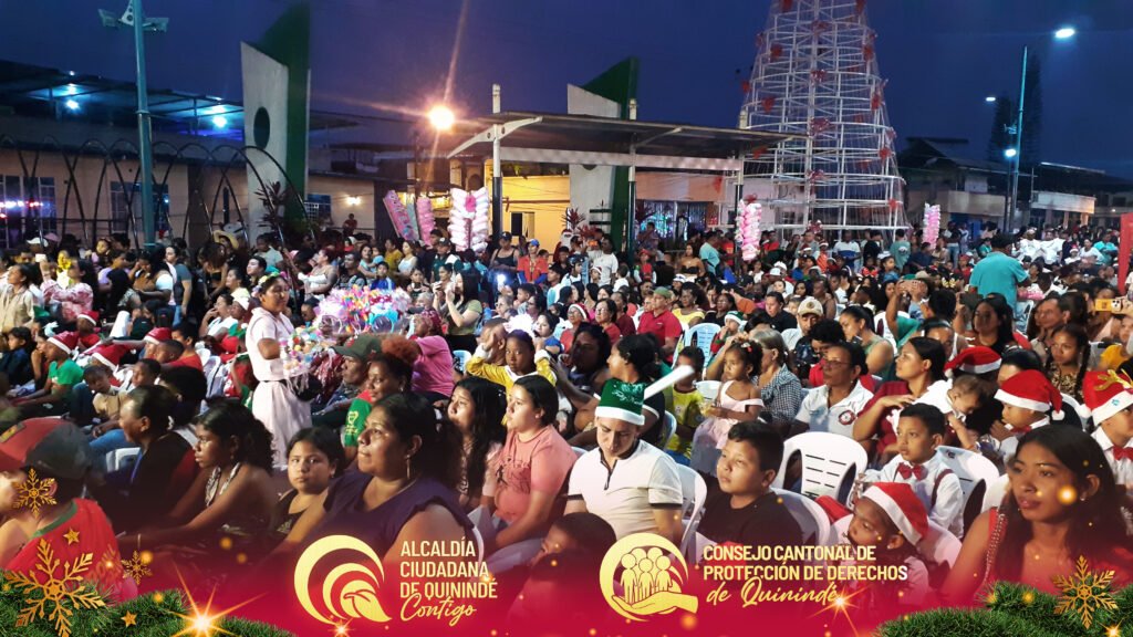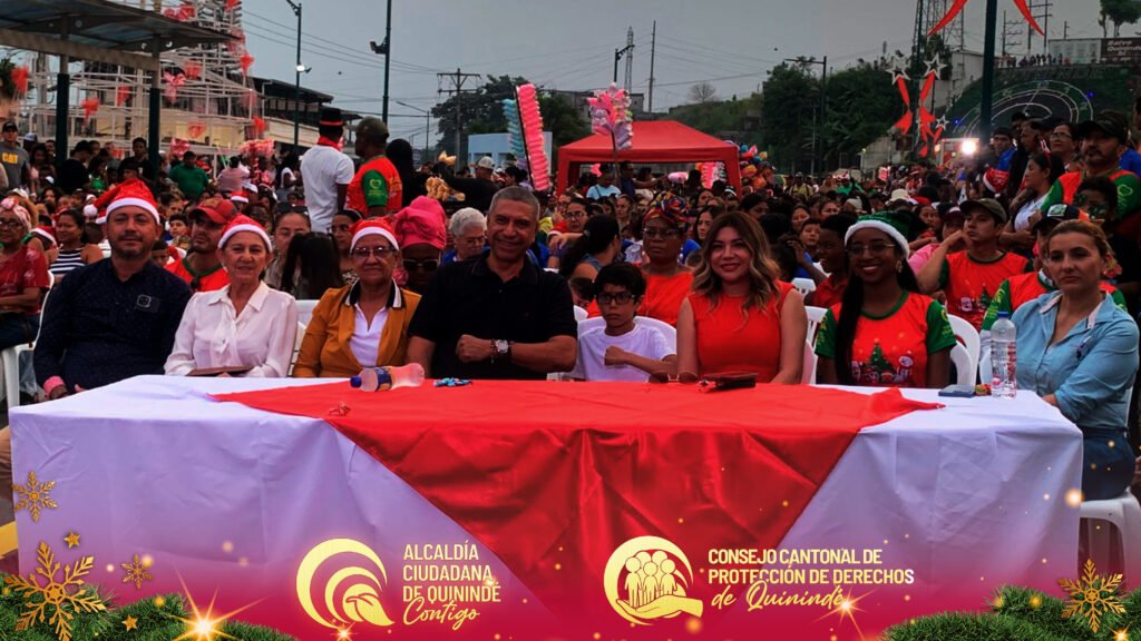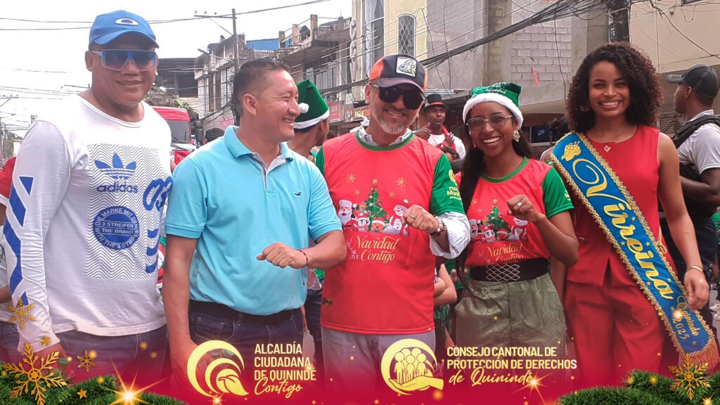 El Consejo Cantonal de Protección de Derechos de Quinindé, liderado por el abg. Ney Agustín Vilela Reina, secretario ejecutivo, junto a su equipo técnico y administrativo, participaron activamente en el Pregón Navideño y la Encendida del Árbol de Navidad 2025, un emotivo evento organizado por la Alcaldía Ciudadana de Quinindé y el Patronato Municipal, que llenó de alegría, color y esperanza a nuestra comunidad.